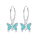 Sterling zilver 925 vlinder bedel oorbellen blauw met glittertjes.