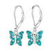 Sterling zilver 925 vlinder oorbellen met turquoise blauw / groen kristal.