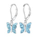 Sterling zilver 925 vlinder bedel oorbellen - blauw met blauw kristal.
