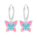 Sterling zilver 925 vlinder bedel oorbellen roze blauw met glittertjes