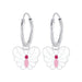 Sterling zilver 925 vlinder bedel oorbellen met glitter wit en roze