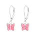 Sterling zilver 925 vlinder oorbellen, roze met glittertjes.