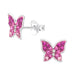 Sterling zilver 925 vlinder oorbellen met verschillende roze tinten en wit kristal.