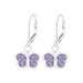 Sterling zilver 925 vlinder oorbellen met lila kristal.