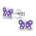 Sterling zilver 925 vlinder oorbellen paars met witte stipjes