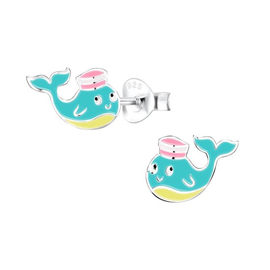 Sterling zilver 925 vrolijke Walvis oorbellen met hoedje