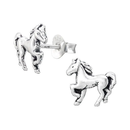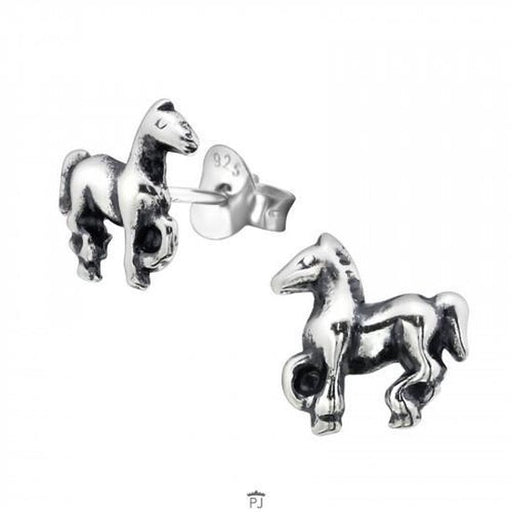 Sterling zilver 925 paard oorbellen - geoxideerd. Materiaal : 925 sterling zilver Afwerking : Geoxideerd, E-coat Grootte: 9 mm x 9 mm Verpakt in e...