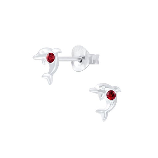 Sterling zilver 925 dolfijn oorknopjes met kristal rood. Materiaal : 925 sterling zilver Afwerking : E-coat Grootte: 6 mm x 5 mm  Verpakt in een bi...