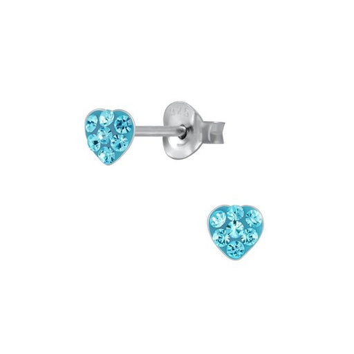 Joy|S - Zilveren petit hartje oorbellen - 5 mm - blauw - kristal - kinderoorbellen