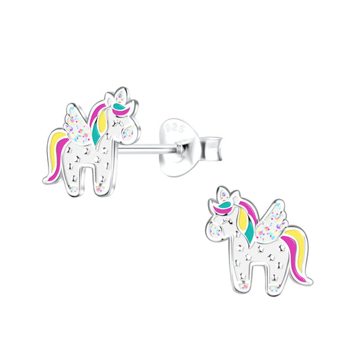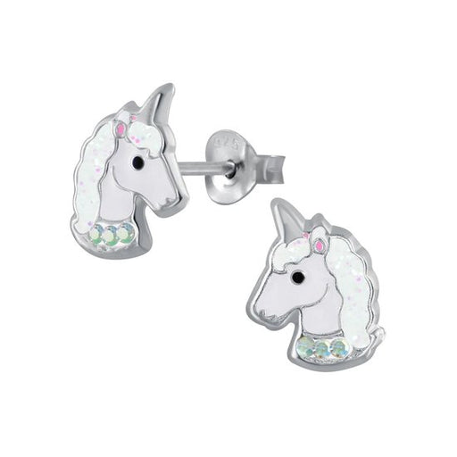 Alle gegevens bekijkenJoy|S - Zilveren eenhoorn pony met glittertjes oorbellen - 10 mm - unicorn