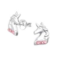 Sterling zilver 925 Eenhoorn oorbellen kristal roze. Design grootte: 8 x 11 mm Materiaal: Sterling zilver 925 Bewerking: E-Coat Verpakt in een bij...