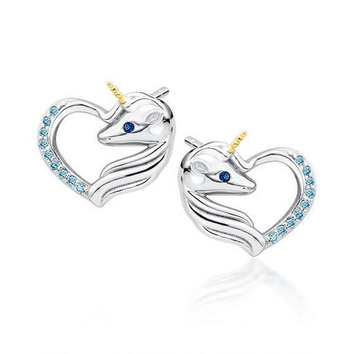 Alle gegevens bekijkenJoy|S - Zilveren eenhoorn oorbellen hart 11 x 12 mm unicorn zirkonia blauw - gehodineerd
