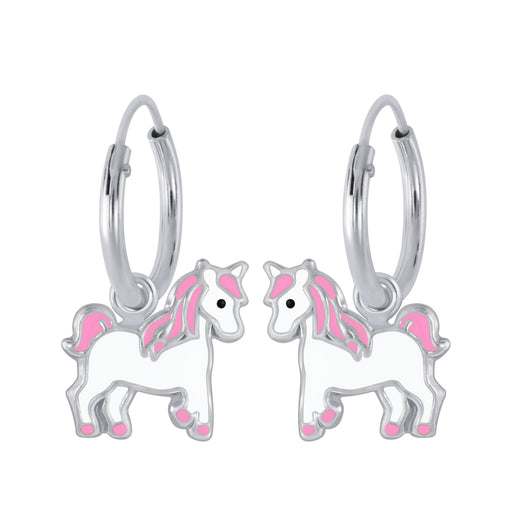 Alle gegevens bekijkenJoy|S - Zilveren eenhoorn oorringen unicorn wit roze paard bedel