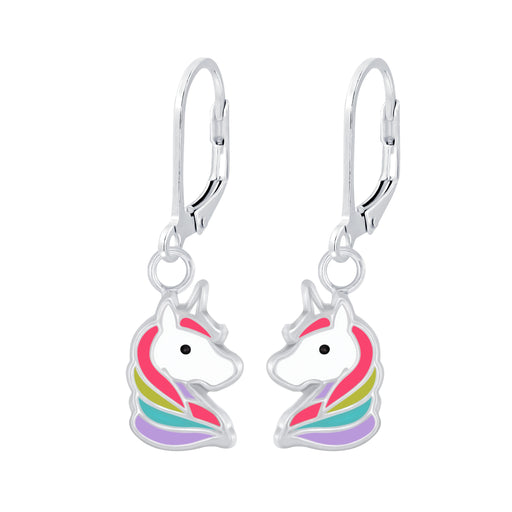 Sterling zilver Eenhoorn/ Unicorn oorbellen multicolor De oorbellen hebben een chique leverback sluiting, ook om verlies te voorkomen/ beperken. Ma...