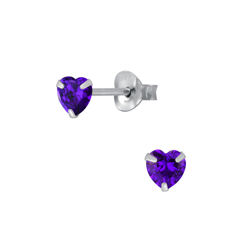Sterling zilver 925 hartje kinderoorbellen. Design grootte: 4 mm x 4 mm Bewerking: E-Coat Materiaal: Sterling zilver 925 Steensoort: Kristal - viol...