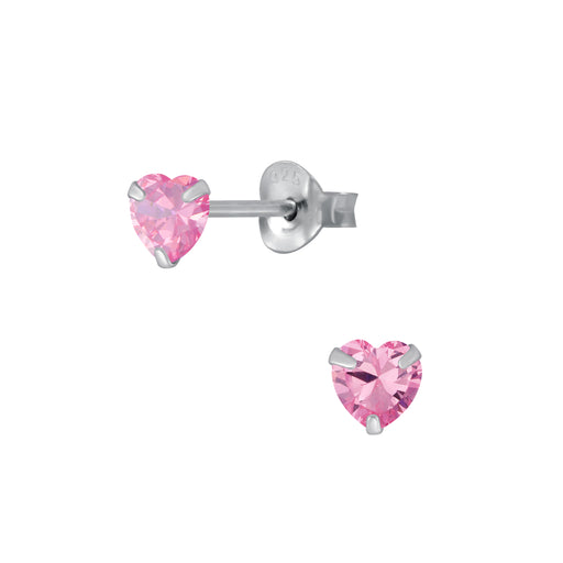 Sterling zilver 925 hartje kinderoorbellen. Design grootte: 4 mm x 4 mm Bewerking: E-Coat Materiaal: Sterling zilver 925 Steensoort: Kristal - roze...