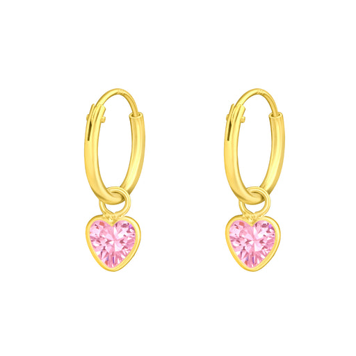Sterling zilver 925 oorringen met hartje bedel van roze zirkonia - goudplating / goldplated. Diameter oorring: 12 mm Afmeting hartje bedel: 5 x 6 m...