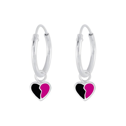 Alle gegevens bekijkenJoy|S - Zilveren hartje bedel oorbellen - zwart roze gebroken hartje - oorringen