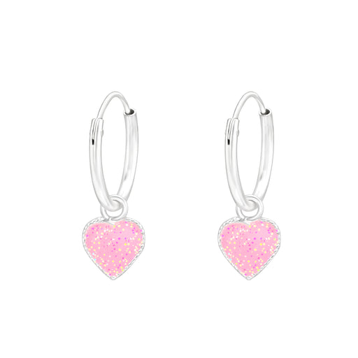 Sterling zilver 925 hartje bedel oorbellen -roze met glittertjes - oorringen Afmeting bedel: 6 mm x 6 mm Diameter oorring: 12 mm Bewerking: E-Coat ...