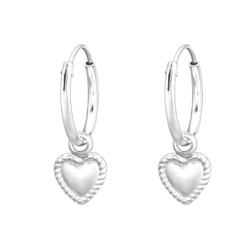 Sterling zilver 925 hartje bedel oorbellen - oorringen - hartje heeft een klassiek bewerkt randje. Diameter oorring: 12 mm Afmeting hartje bedel: ...