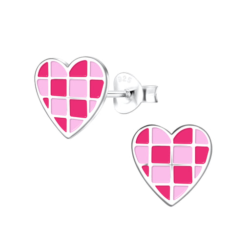 Sterling zilver 925 hartje oorbellen - met vierkante roze blokjes. Design grootte: 8 x 9 mm Bewerking: E-Coat Materiaal: Sterling zilver 925 Verpa...