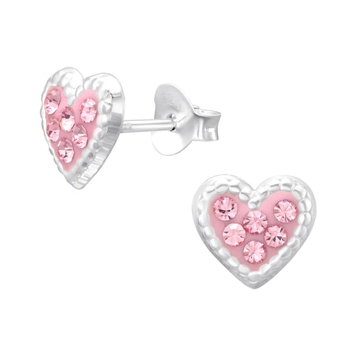 Alle gegevens bekijkenJoy|S - Zilveren hartje oorbellen - 8.2 x 7.5 - zacht roze met roze kristalletjes - sierlijk afgewerkt randje - kinderoorbellen