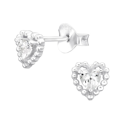 Sterling zilver 925 elegante hartjes oorknopjes voor kinderen - zirkonia hartje met bolletjes randje. Materiaal: Sterling zilver 925 Afwerking: E -...