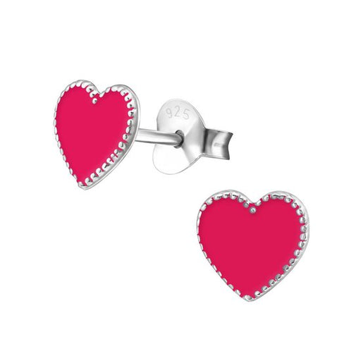 Sterling zilver 925 hartje roze/ rood oorbellen met classic randje Afmeting: 7 mm x 7 mm Materiaal: Sterling zilver 925 Afwerking: E-coat Verpakt i...