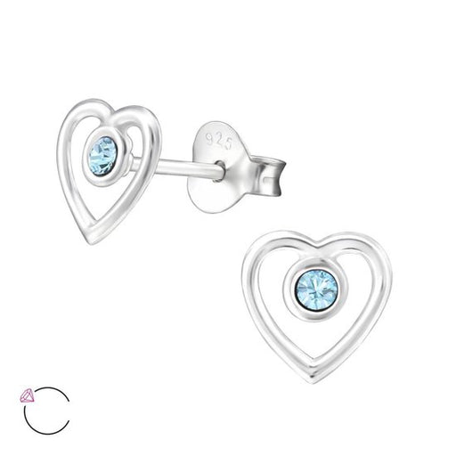 Sterling zilver 925 oorbellen hartje met blauw kristal Afmeting: 7 mm x 7 mm Materiaal: Sterling zilver 925 Afwerking: E-coat Verpakt in een bijbe...