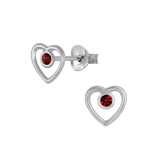 Sterling zilver 925 hartje oorknopjes met rood kristalletje Materiaal : 925 sterling zilver Afwerking : E-coat Grootte: 7 mm x 7 mm Verpakt in ee...