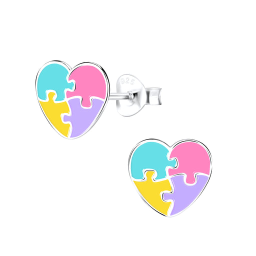 Sterling zilver 925 hartje oorbellen met puzzelstukjes. Afmeting: 9 mm x 9 mm Materiaal: Sterling zilver 925 Afwerking: E-coat Verpakt in een bij...