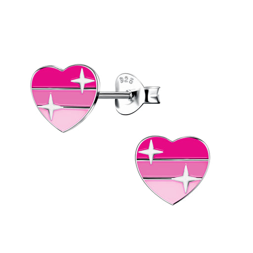 Alle gegevens bekijkenJoy|S - Zilveren hartje oorbellen - roze gestreept met sterretjes - 8 mm - ster - oorknoppen - kinderoorbellen