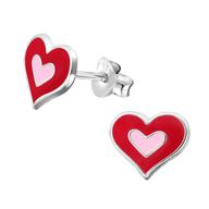 Sterling zilver 925 hartjes oorknoppen - rood met zilver - voor kinderen. Materiaal: Sterling zilver 925 Afwerking: Gepolijst, E-coat Afmeting: 7.7...