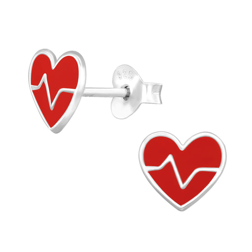 Joy|S - Zilveren hartje oorbellen - rood zilver hartje met hartslag - 7.7 x 6.8 mm - kinderoorbellen
