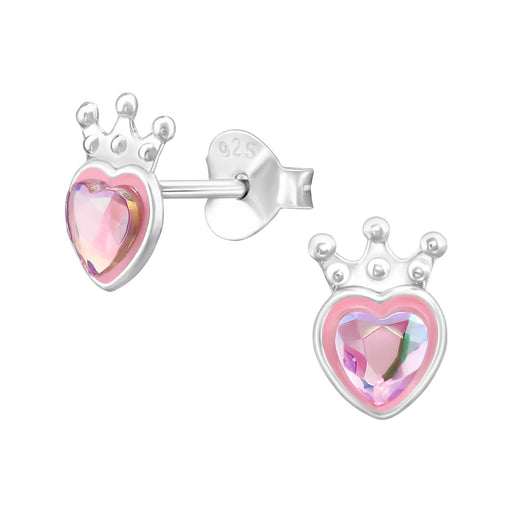 Alle gegevens bekijkenJoy|S - Zilveren hartje oorbellen - met kroontje - roze - 5.5 x 8 mm - prinses oorknopjes - kinderoorbellen - sterling zilver 925