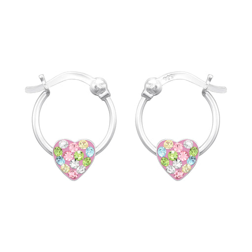 Alle gegevens bekijkenJoy|S - Zilveren hartje oorbellen - pastel regenboog - kristal - 8 mm - kinderoorbellen
