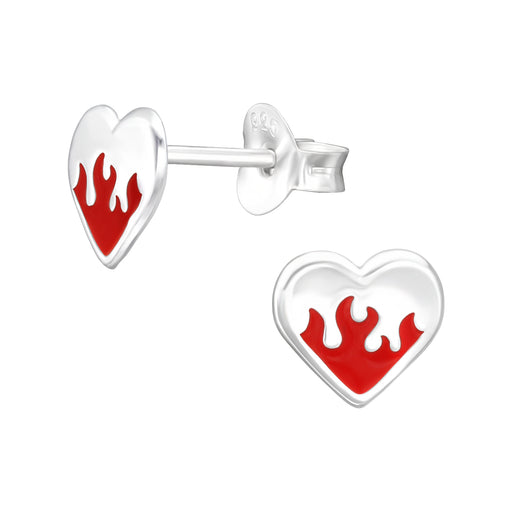 Alle gegevens bekijkenJoy|S - Zilveren hartje oorbellen - vlammend hart - 7 x 6 mm - zilver rood - kinderoorbellen