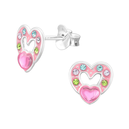 Alle gegevens bekijkenJoy|S - Zilveren hartje oorbellen - met roze hartje (erop) - kristal multicolor - 8 x 8.5 mm - kinderoorbellen