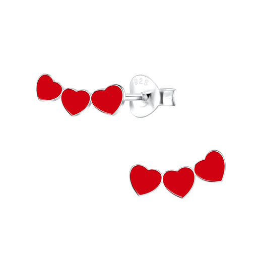 Alle gegevens bekijkenJoy|S - Zilveren hartjes oorbellen - 3 rode hartjes - 10 x 5 mm