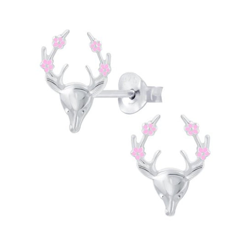 Sterling zilver 925 hertje met roze bloemen oorbellen Afmeting: 10 mm x 11 mm Materiaal: Sterling zilver 925 Afwerking: E-coat Verpakt in een bijb...