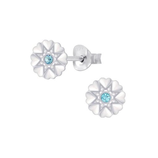 Alle gegevens bekijkenJoy|S - Zilveren hartjes bloem oorbellen - 7 mm - blauw kristal