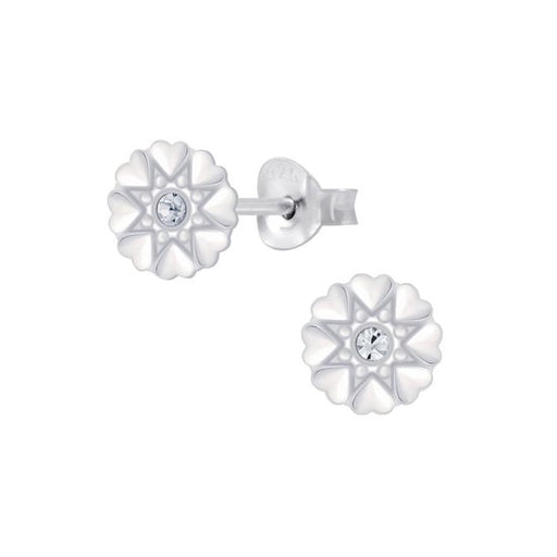 Alle gegevens bekijkenJoy|S - Zilveren hartjes bloem oorbellen - 7 mm - kristal