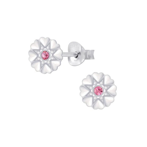 Alle gegevens bekijkenJoy|S - Zilveren hartjes bloem oorbellen - 7 mm - roze kristal