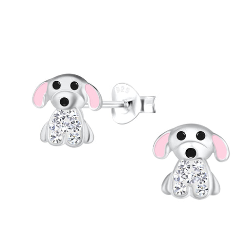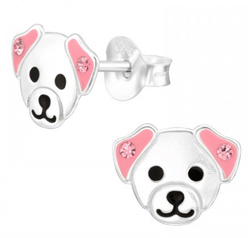 Alle gegevens bekijkenJoy|S - Zilveren hond oorbellen - zilver met roze oortjes en kristalletjes - 8 x 8 mm - kinderoorbellen
