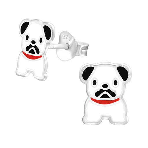 Alle gegevens bekijkenJoy|S - Zilveren hond oorbellen - wit zwart met rode halsband - 7 x 9 mm - voor kinderen