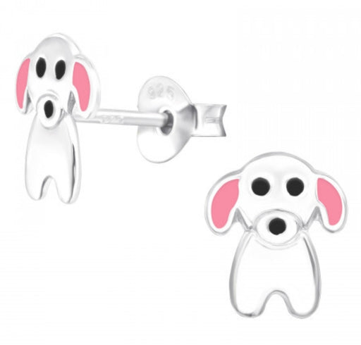 Alle gegevens bekijkenJoy|S - Zilveren hond oorbellen - 9 x 10 mm - wit roze
