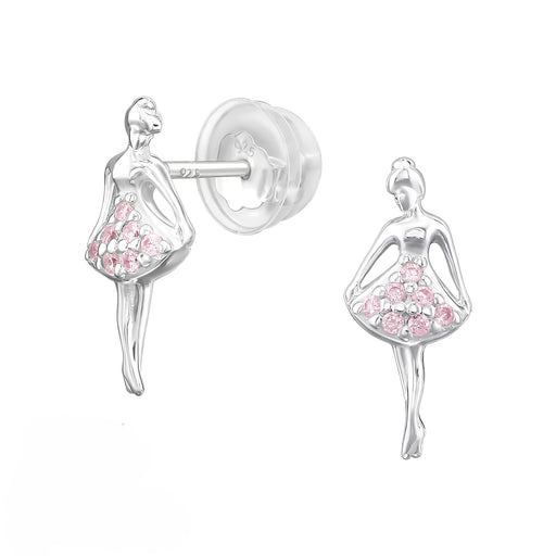 Sterling zilver 925 ballerina danseres oorbellen - massief zilver met roze zirkonia - extra zachte vlindersluiting (siliconen omhulsel - deze sluit...