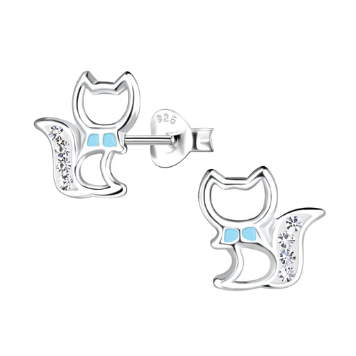 Sterling zilver 925 kat poes oorbellen met zirkonia. Materiaal : 925 sterling zilver Afwerking : E-coat Grootte: 9 mm x 10 mm Verpakt in een bijbeh...