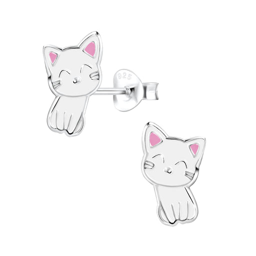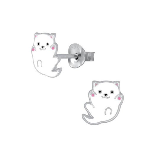 Alle gegevens bekijkenJoy|S - Zilveren kat poes oorbellen wit 8 x 12 mm