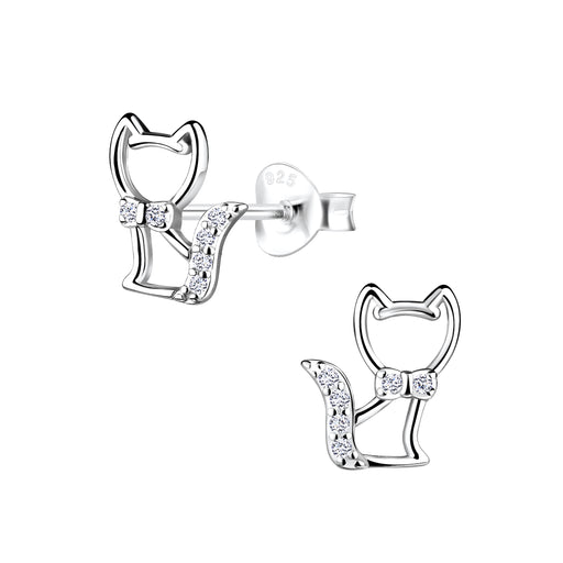 Alle gegevens bekijkenJoy|S - Zilveren kat poes oorbellen met strikje - 8 x 9 mm - zirkonia - gehodineerd